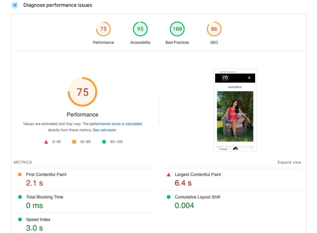 Os principais fatores que levaram a esta melhoria foi o adiamento dos recursos não essenciais e a otimização dos tamanhos das imagens. A cliente ficou muito agradada com o resultado, nunca tendo visto antes a sua loja online tão rápida!